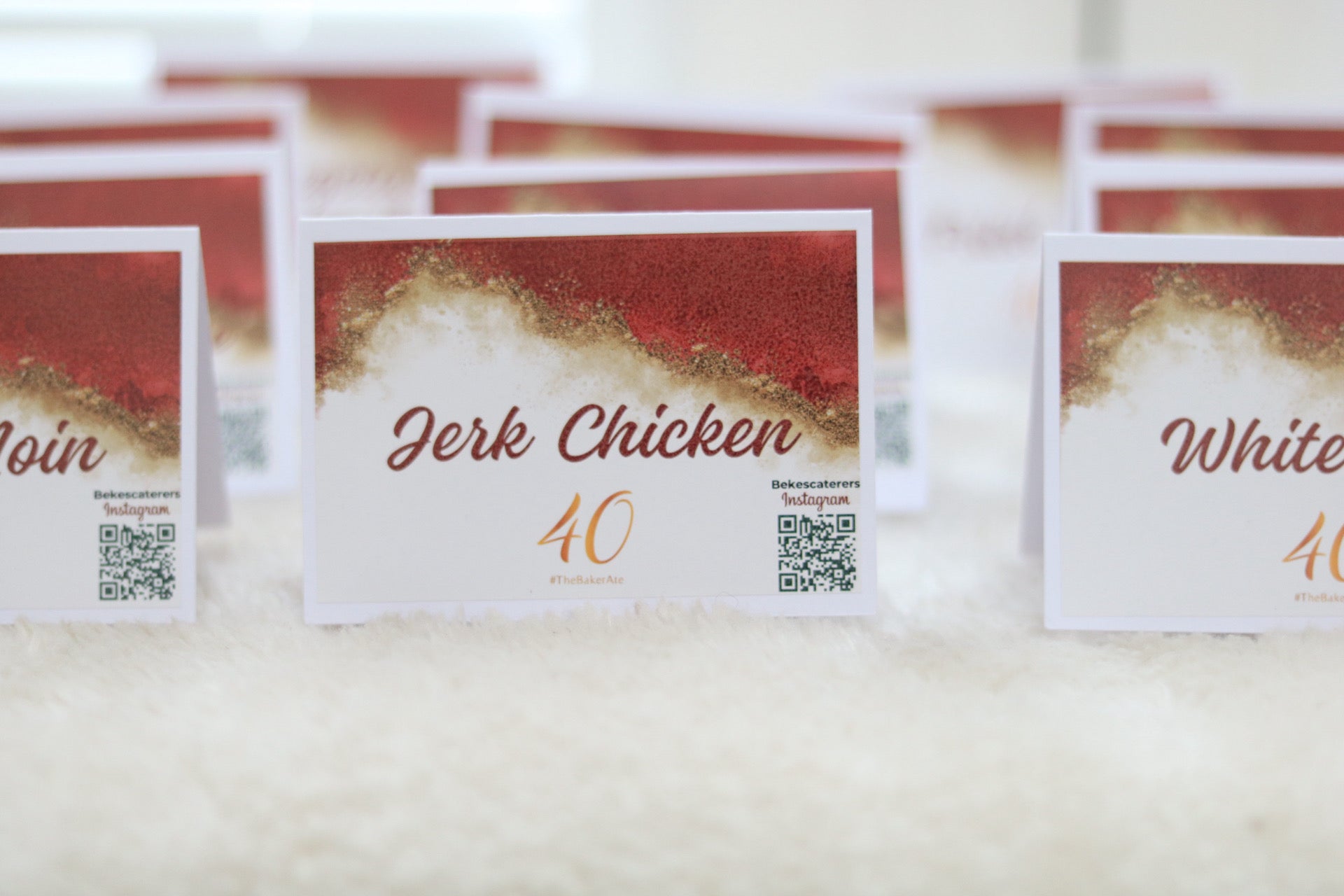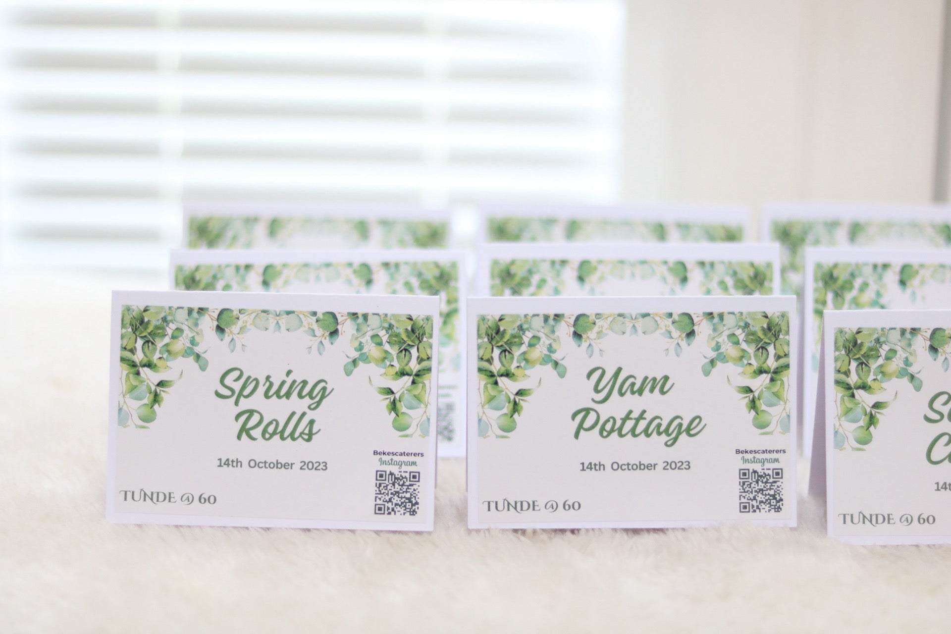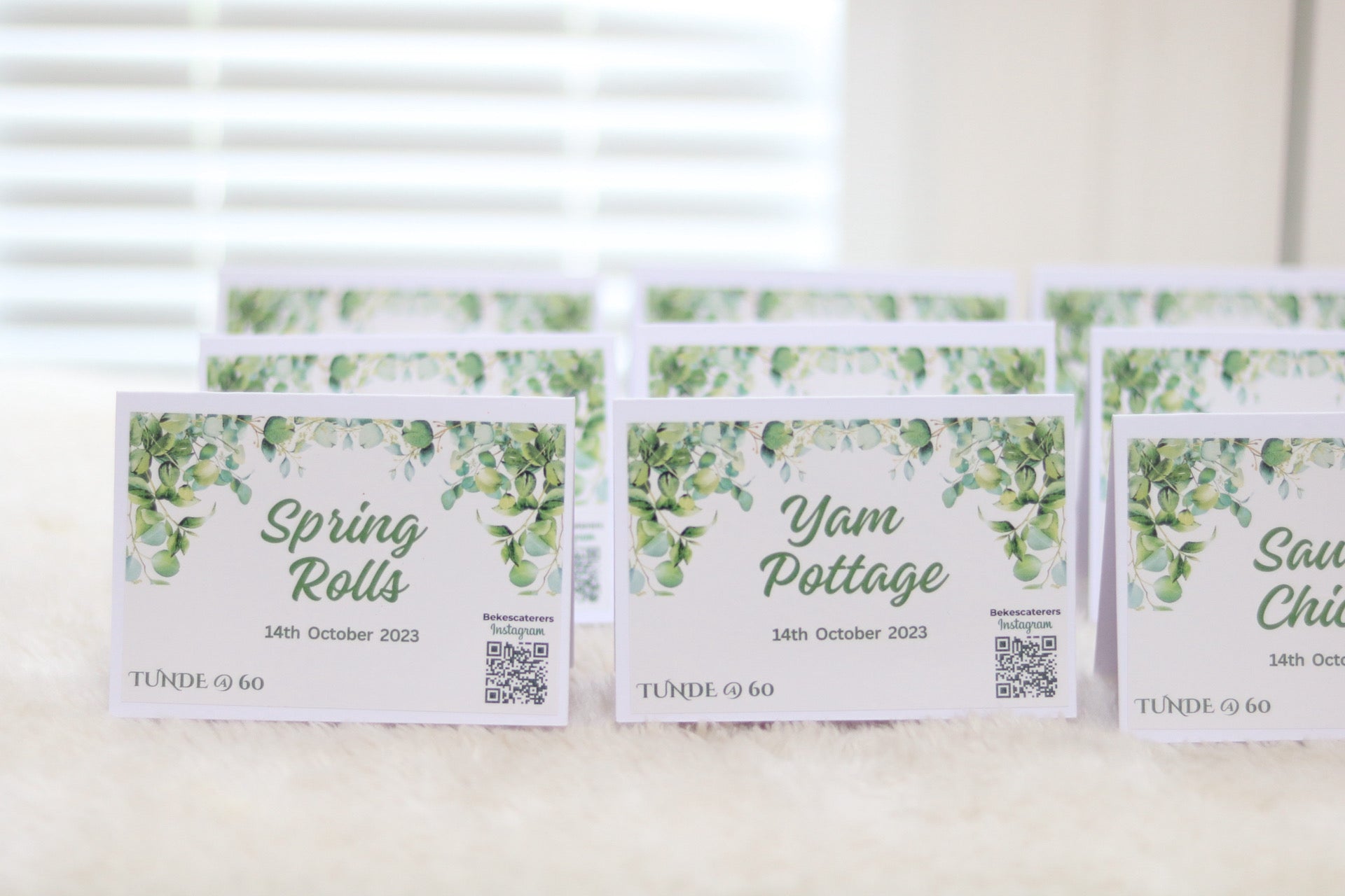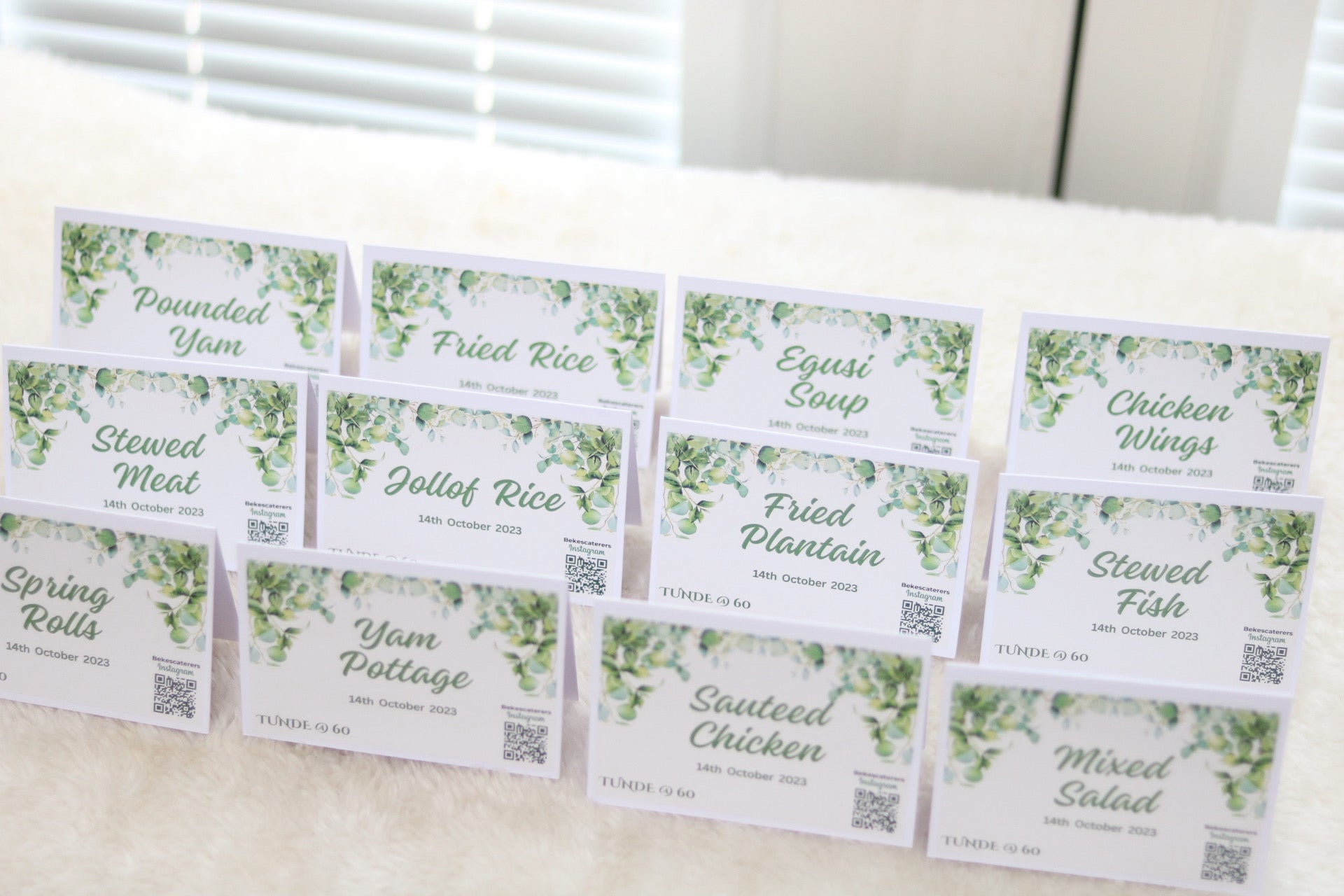 This gorgeous buffet food labels are customized to suit your event. We have various designs to work with and are more than happy to work with your design. If you would like us to design one for you, add more information in the personalisation box and we will be in touch. Please note that if we need to design one for you, we will add an extra working day to the delivery times.