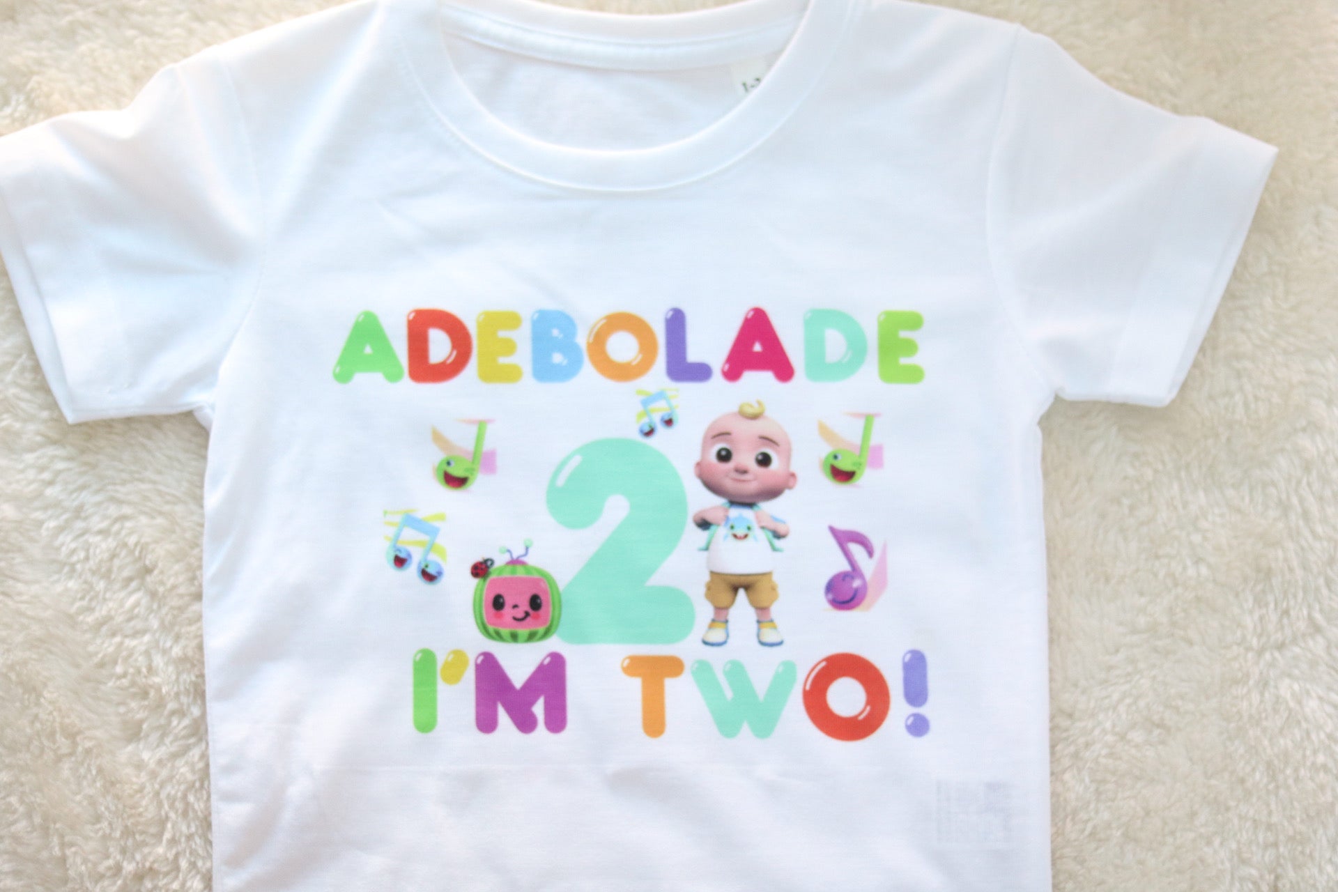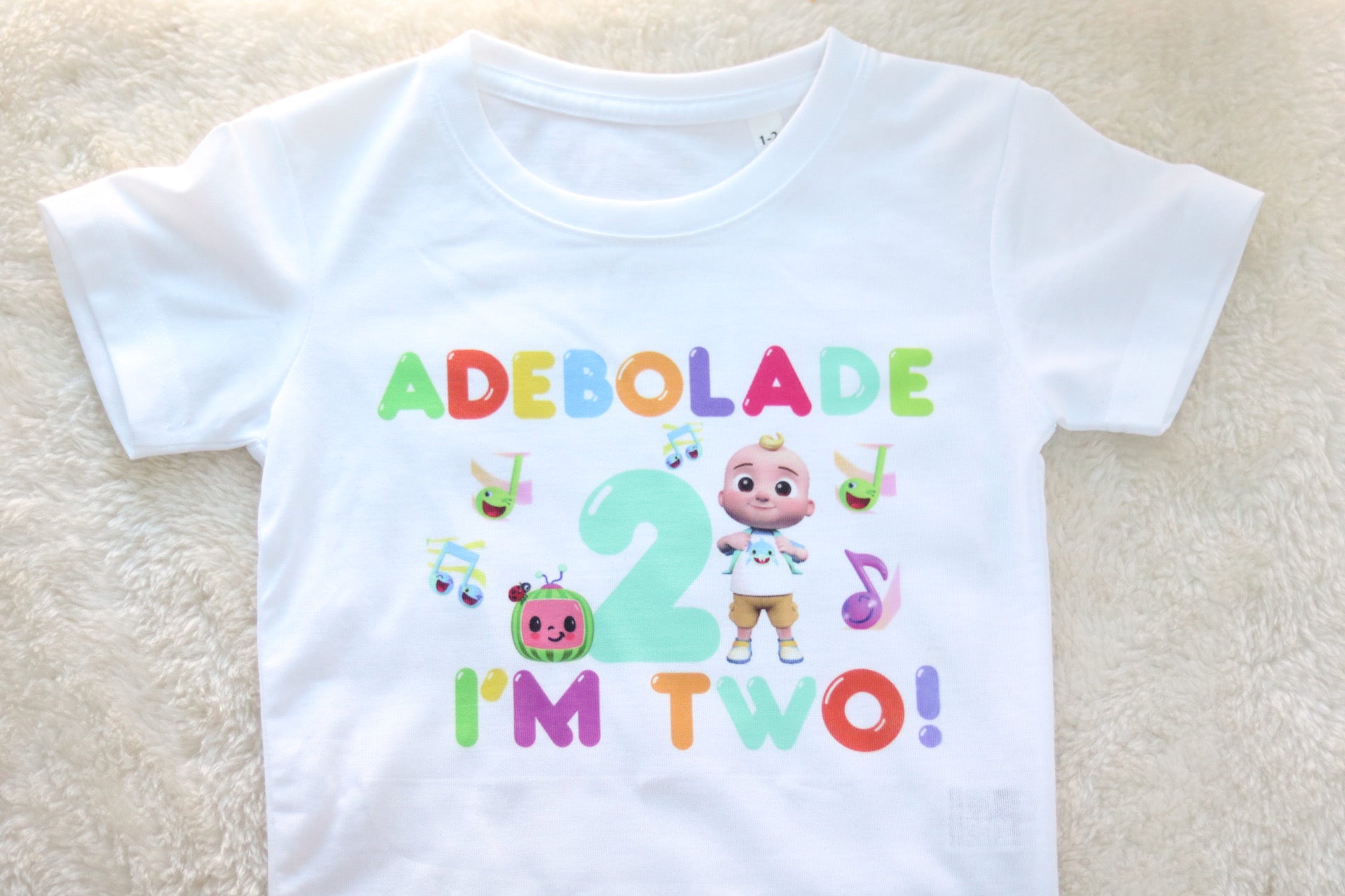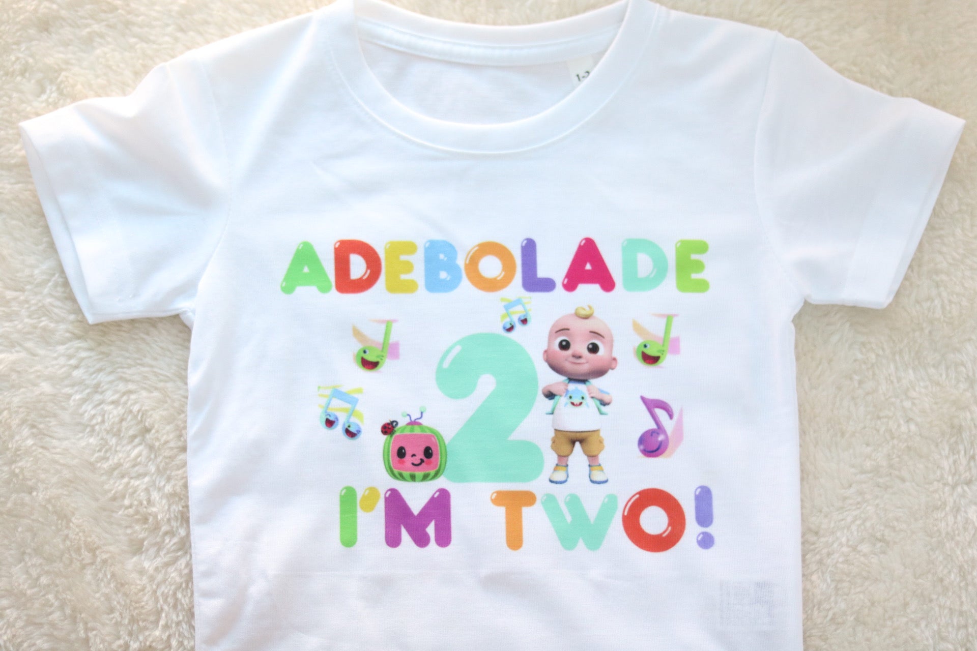 A Cocomelon Inspired T-shirt which is personalised with child’s name and age. This would make the perfect gift for any child who is a fan of Cocomelon. The colours are vibrant and it is very eye catching. The material is made from sustainable 100% Polyester and comes in various sizes ranging from 6-12 months, 12-18 months, 1-2 years, 3-4 years etc until 10 years old.