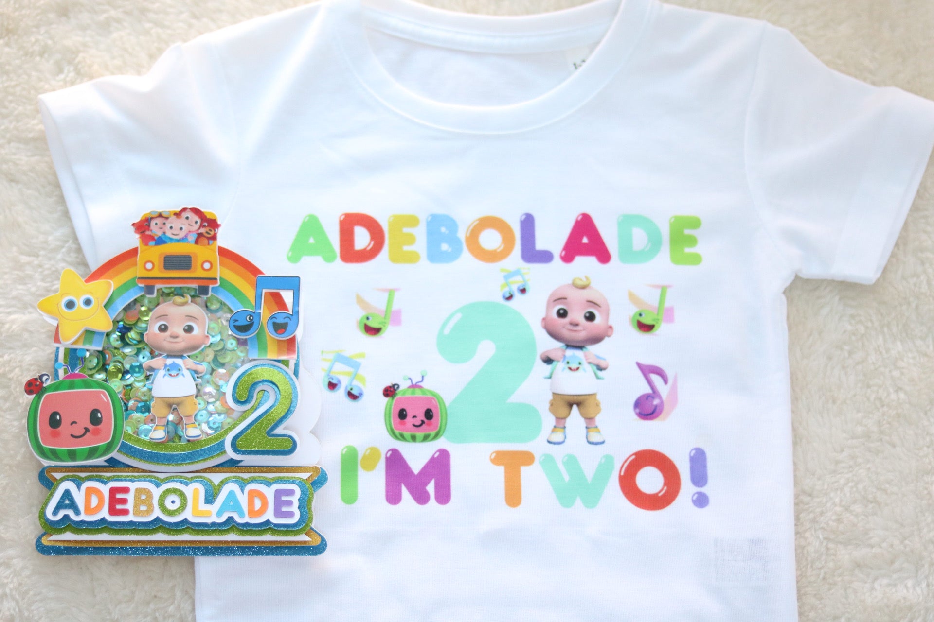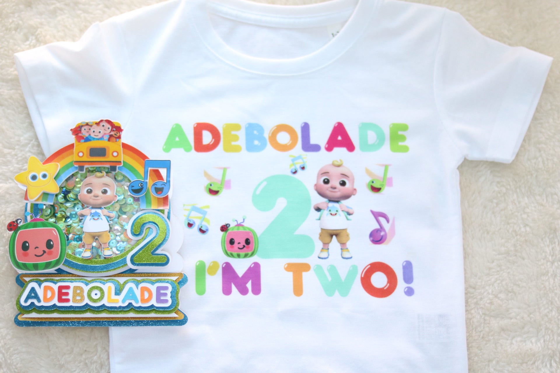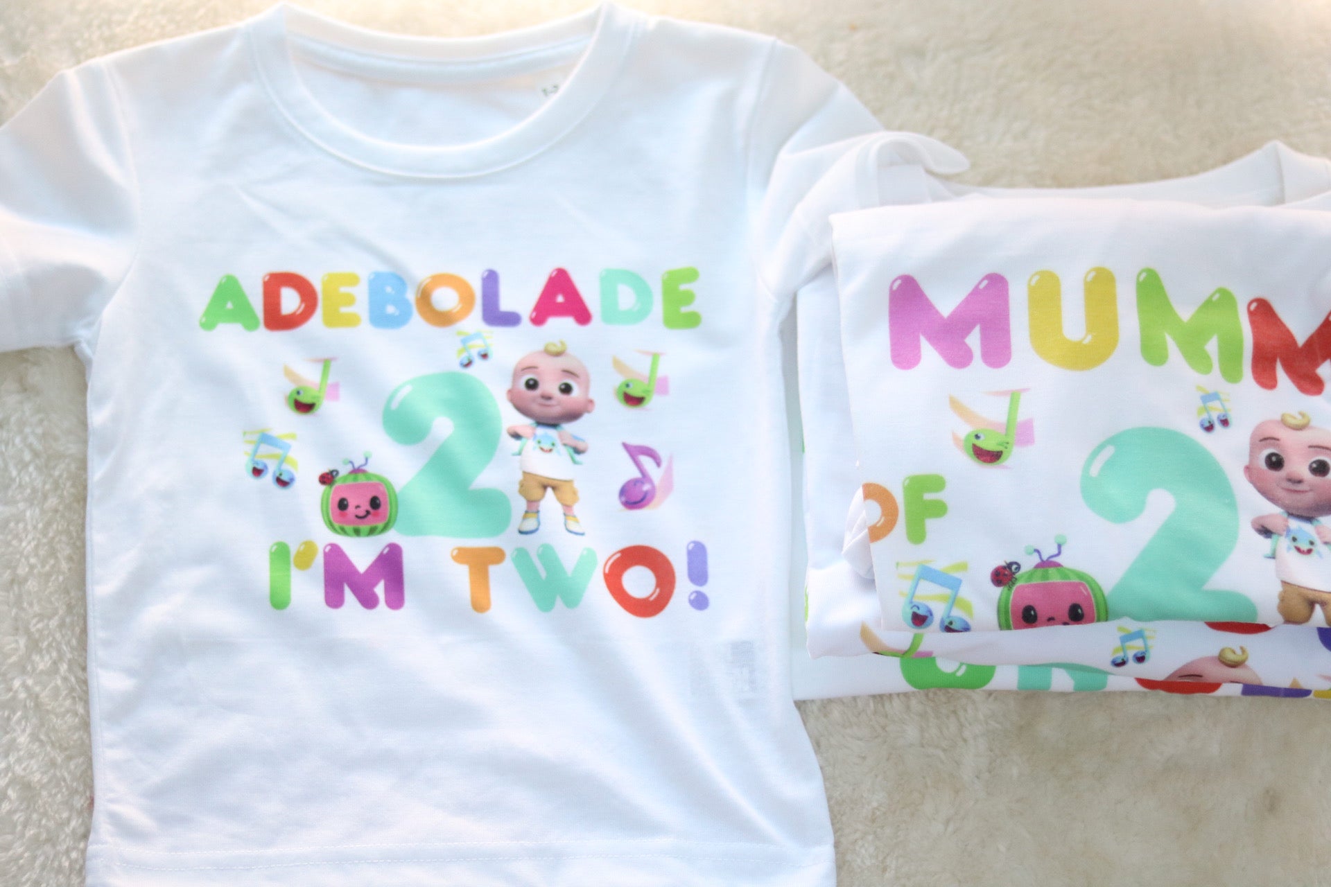 A Cocomelon Inspired T-shirt which is personalised with child’s name and age. This would make the perfect gift for any child who is a fan of Cocomelon. The colours are vibrant and it is very eye catching. The material is made from sustainable 100% Polyester and comes in various sizes ranging from 6-12 months, 12-18 months, 1-2 years, 3-4 years etc until 10 years old.