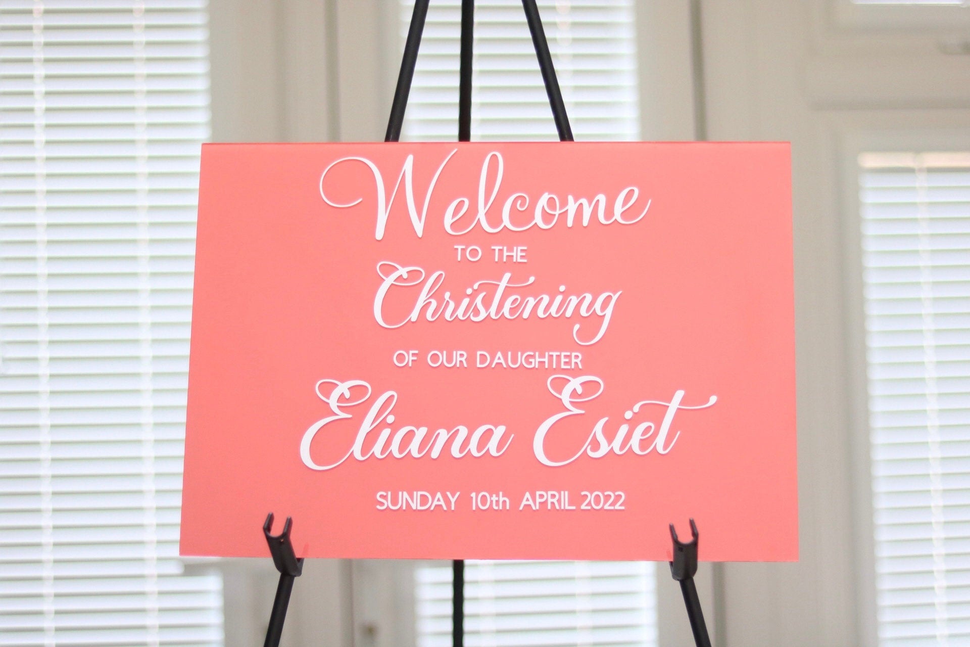 This gorgeous A3 Acrylic Sign is perfect for any event- Weddings, Christening (as shown in this photo), Baptism, Holy Communion, Baby Showers, Bridal Showers,etc. The material is Acrylic/Perspex with 0.8mm thickness (it is quite light but not flimsy).