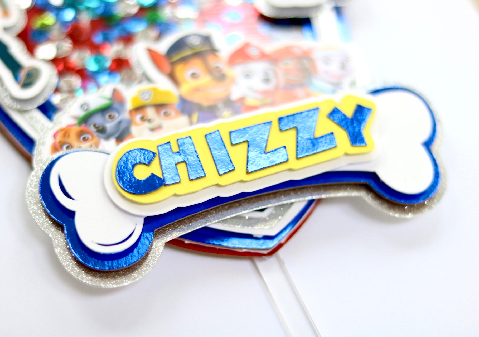 A beautiful Personalised Paw Patrol Cake Topper which would make any fan absolutely delighted. It can be used for birthdays or any occasion you prefer. It does not necessarily have to be a birthday; it could be any celebration.
