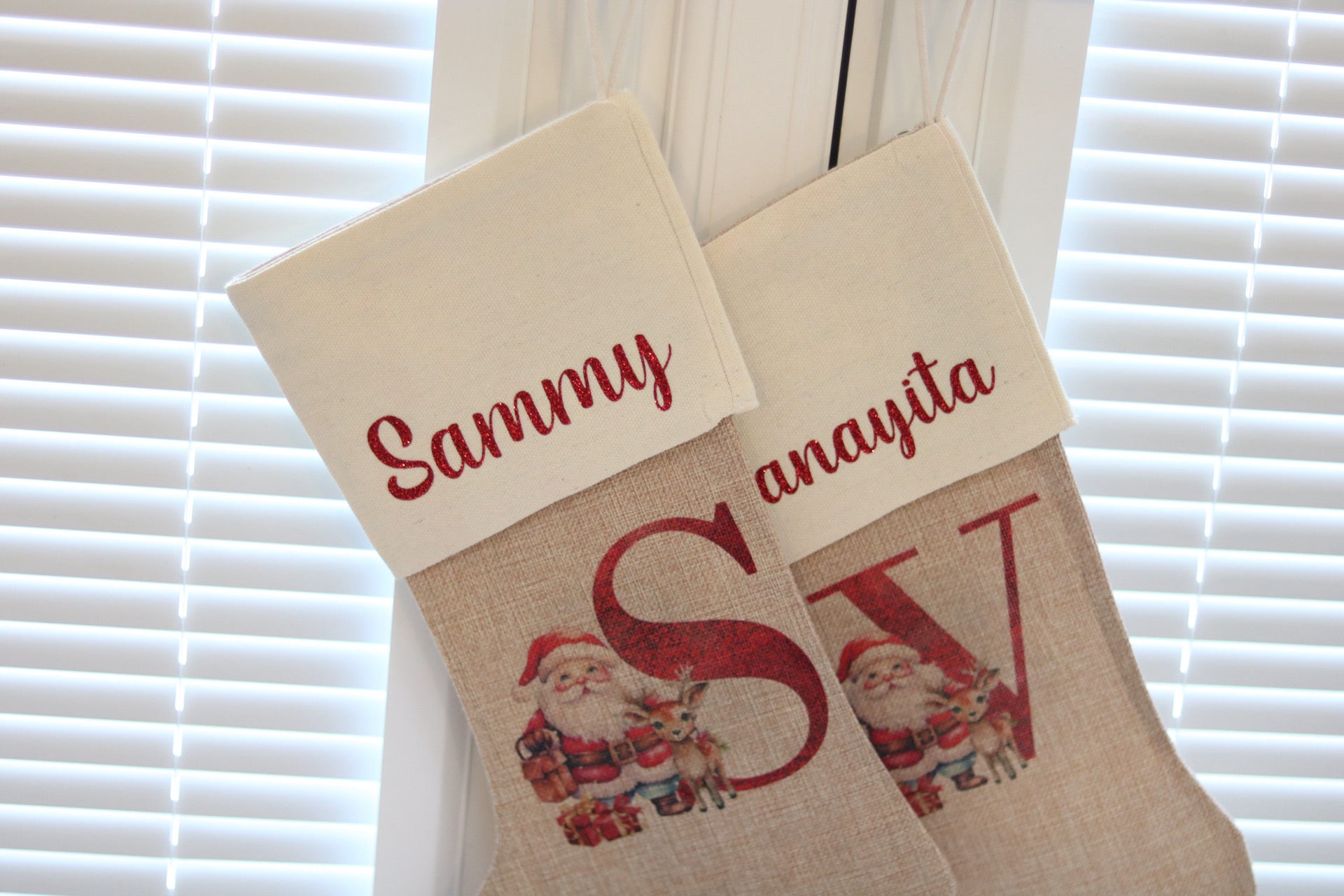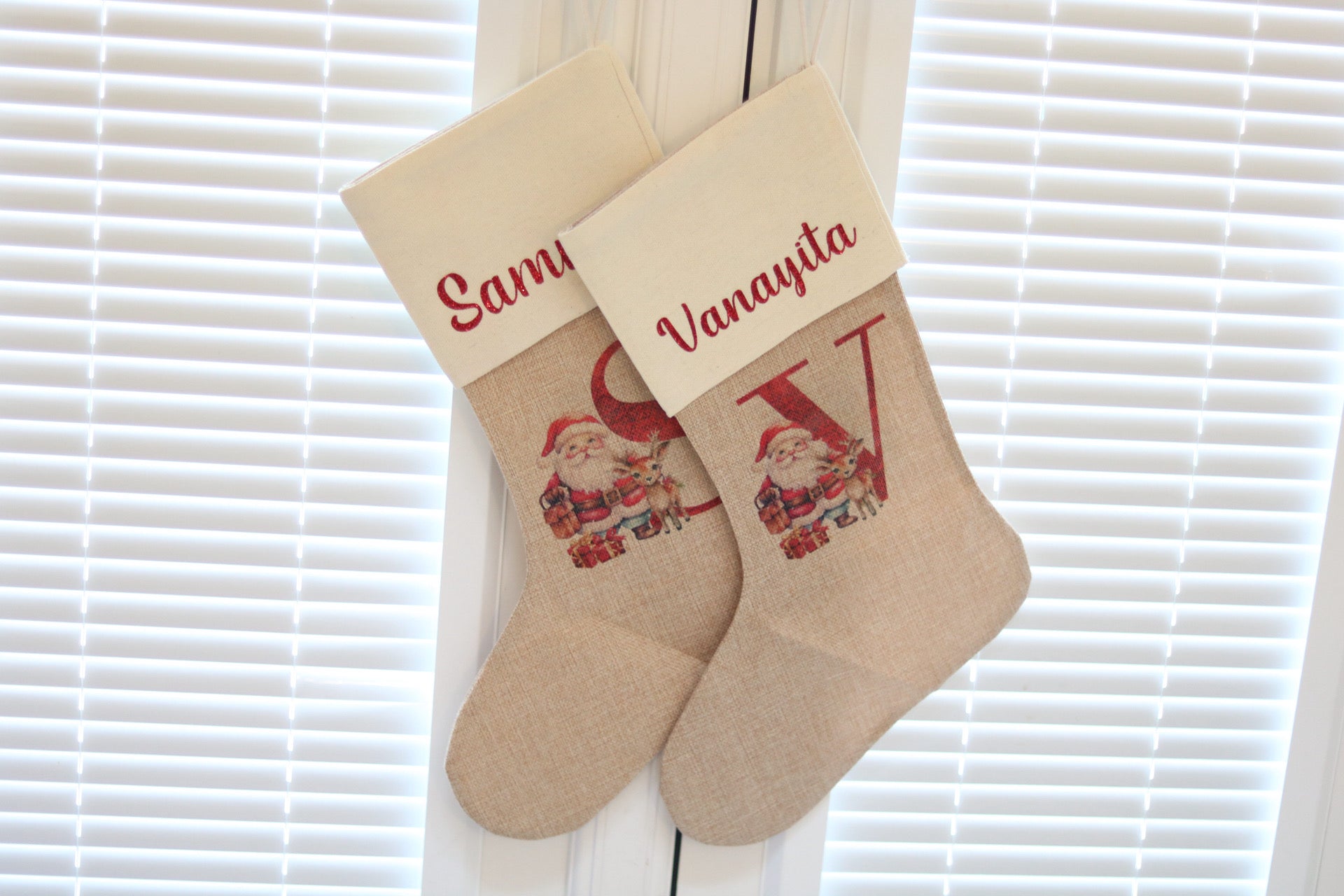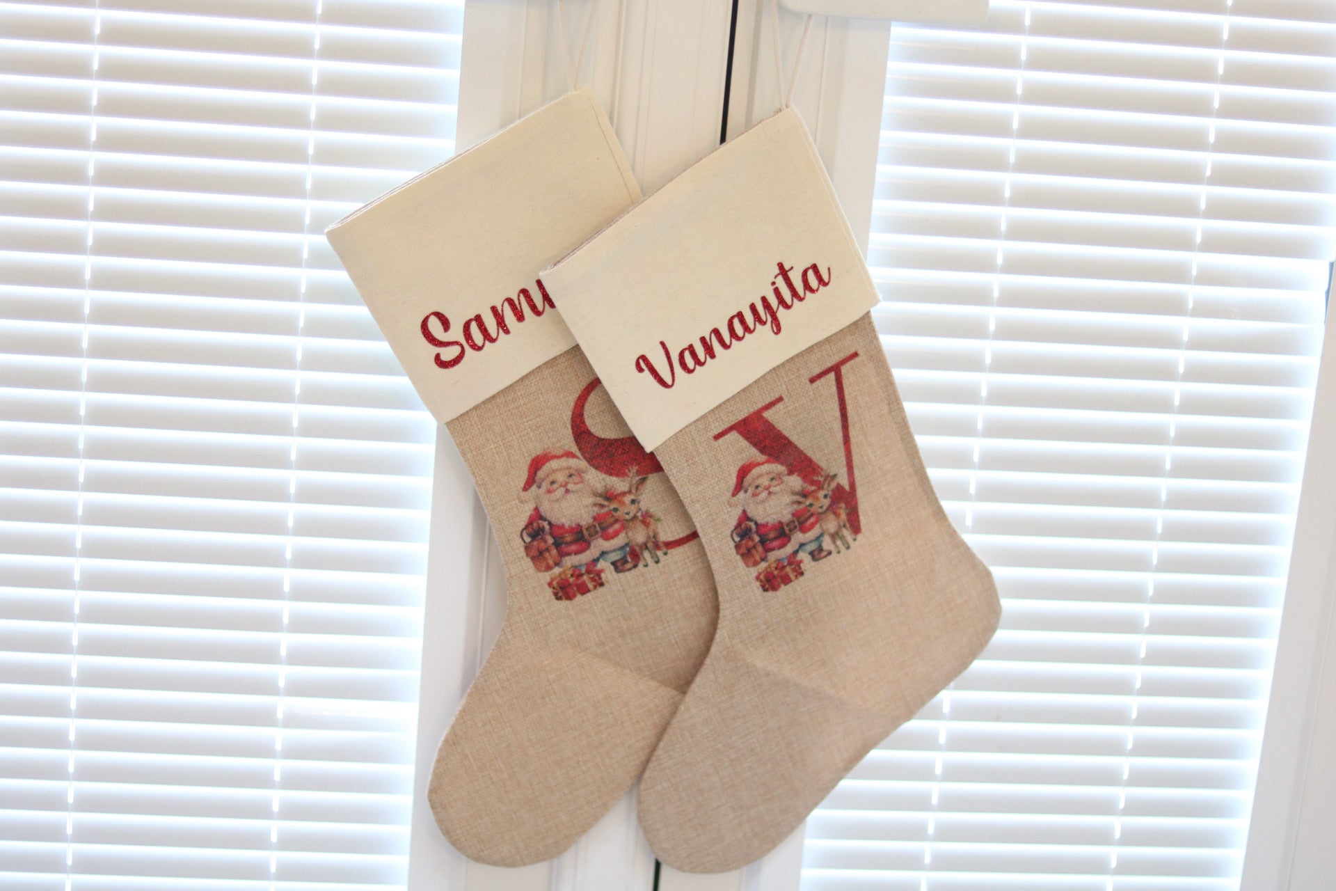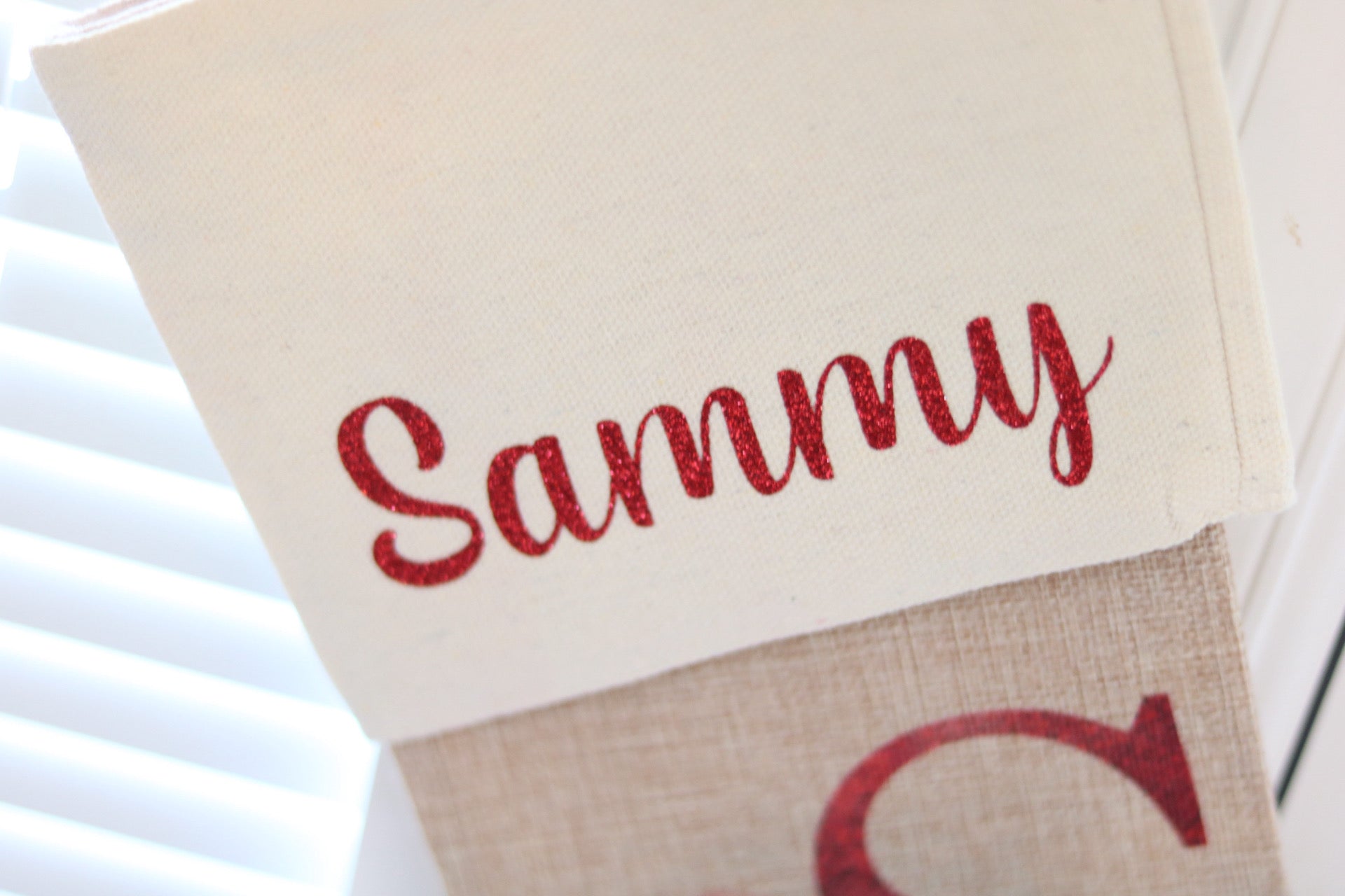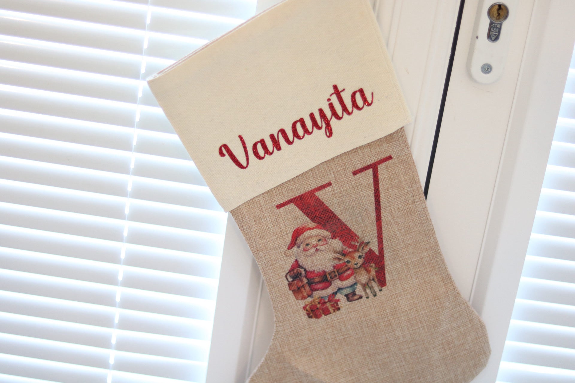 The stocking is made from high quality Burlap and a Linen lining at the top. The print is sublimated onto the stocking so it will remain as vibrant.