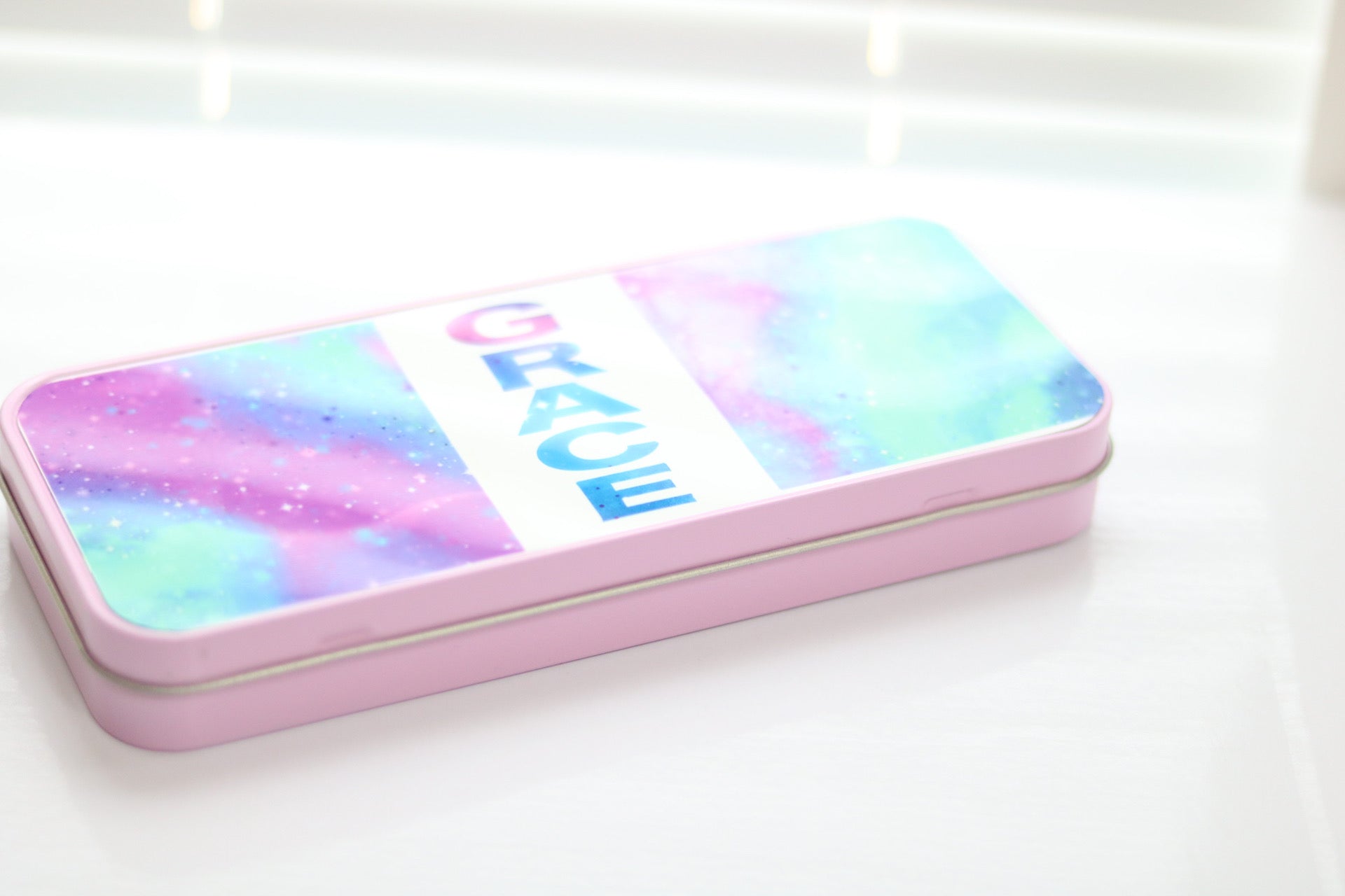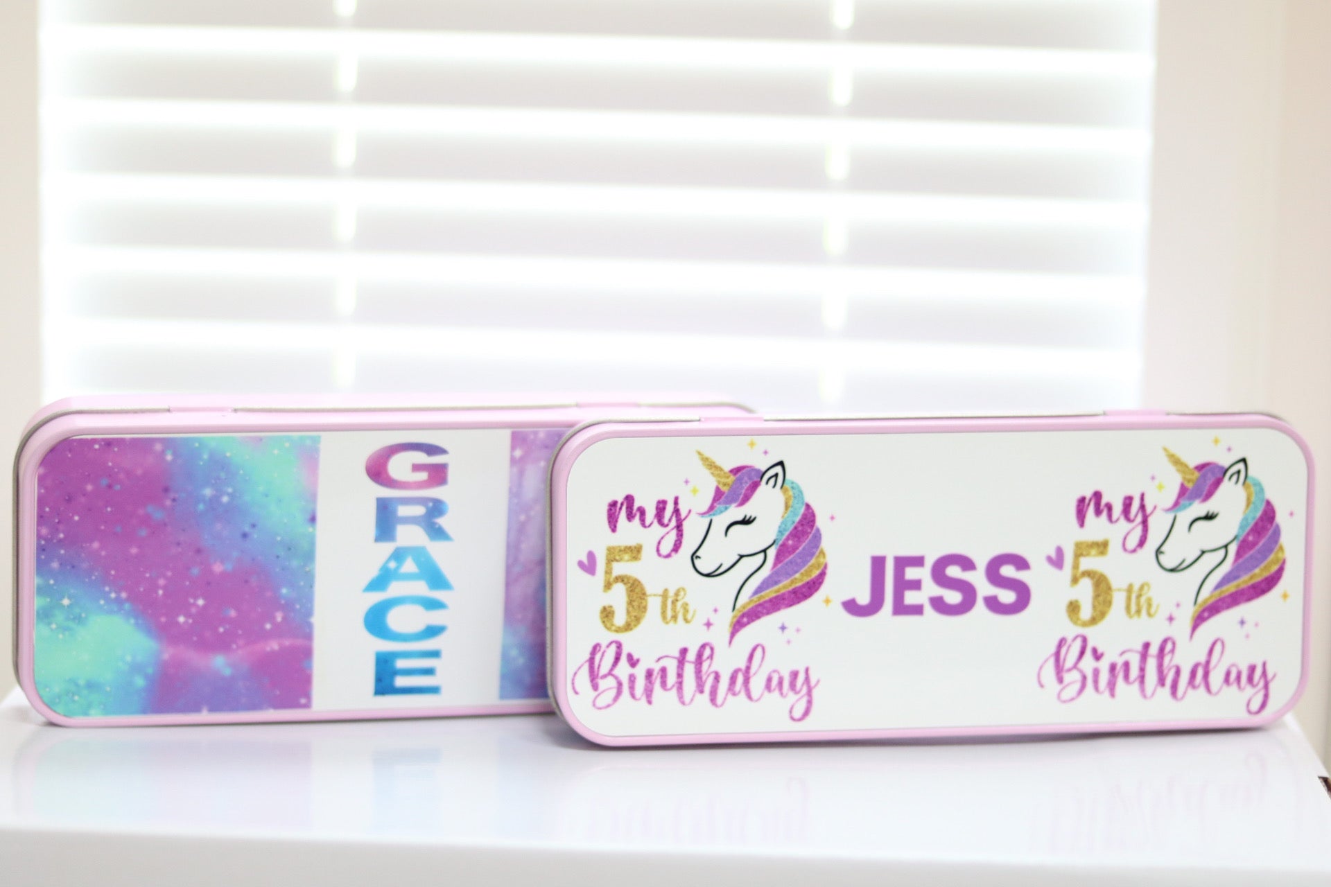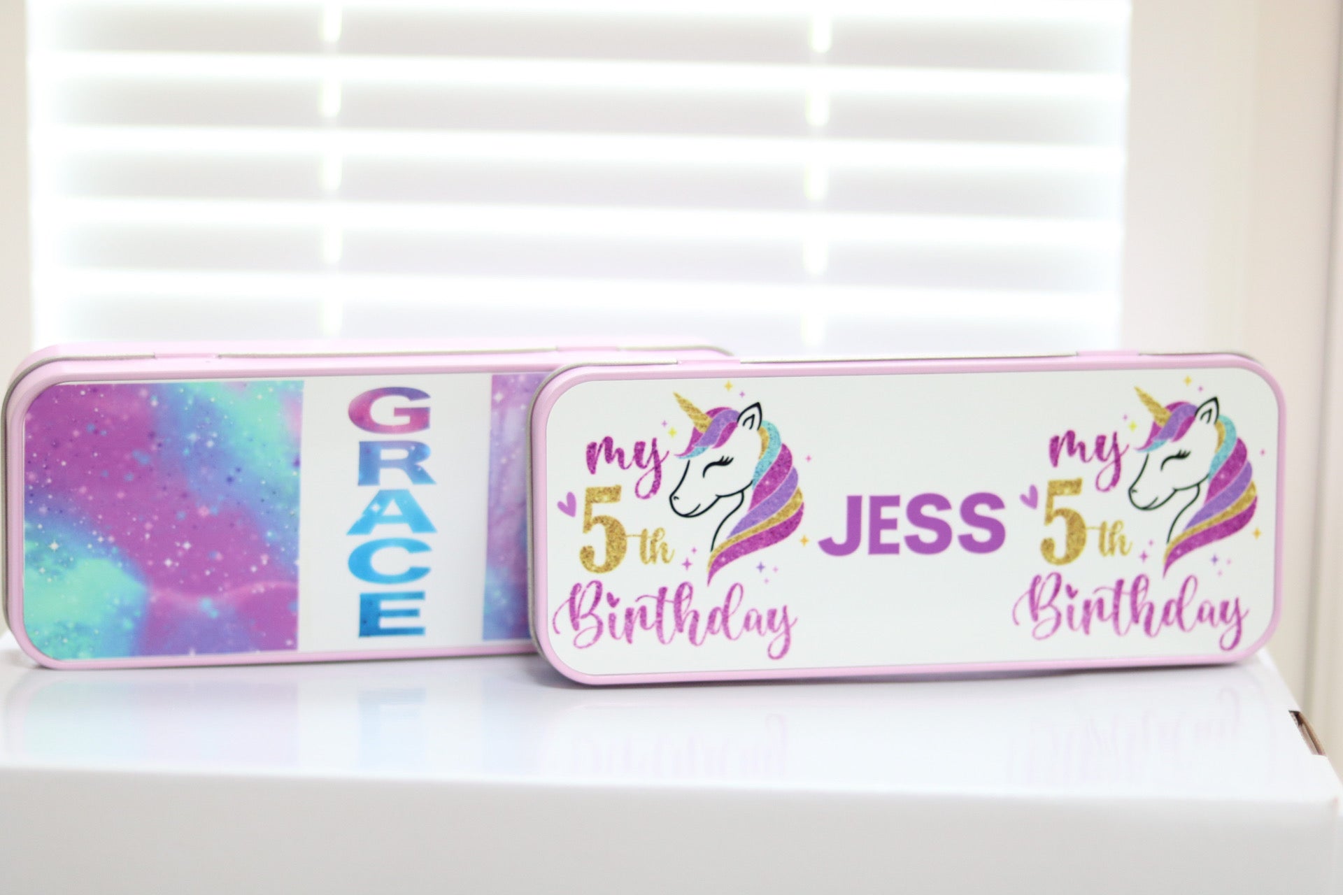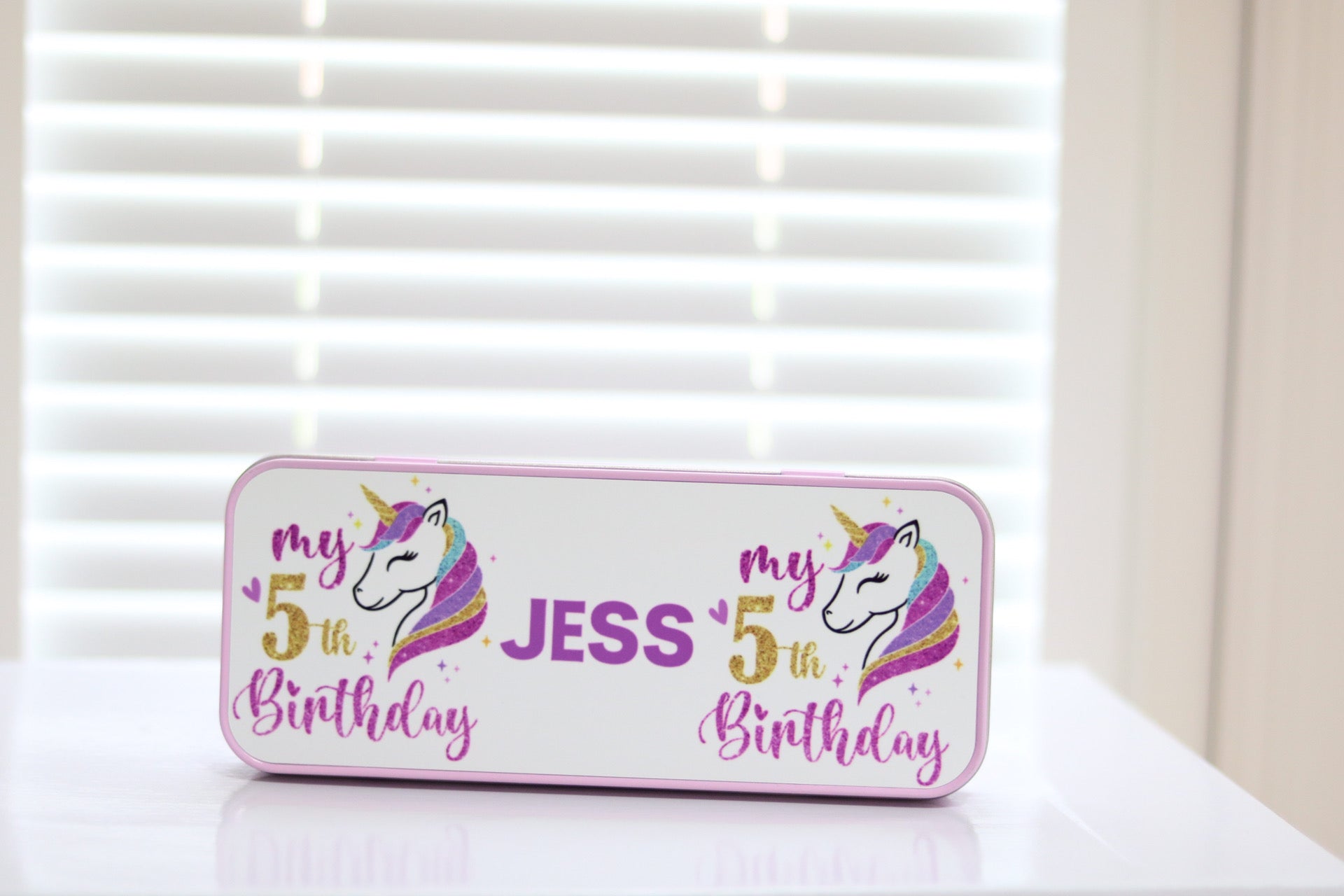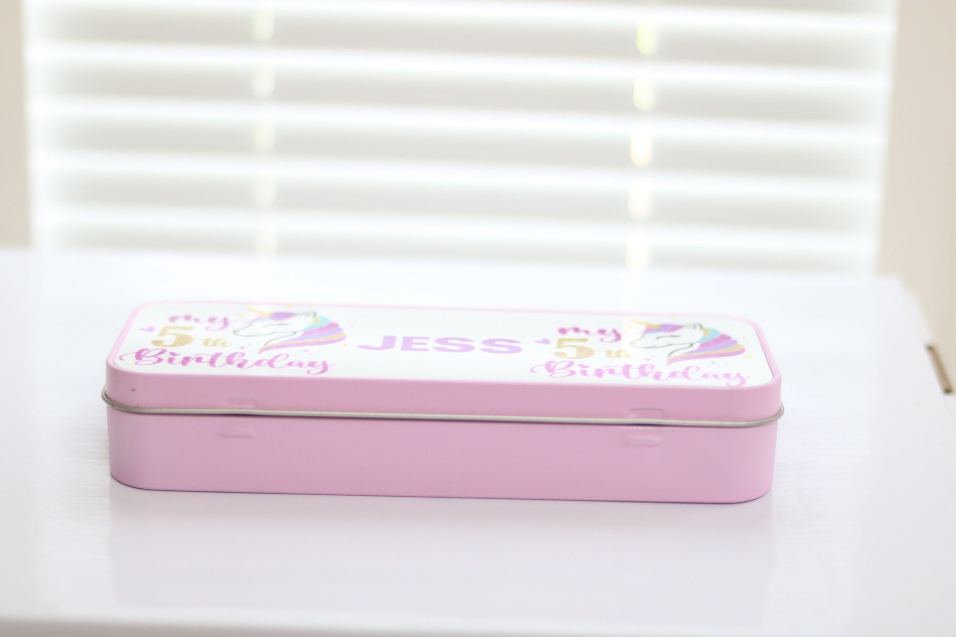 This personalised pencil case is the perfect way to keep your child's school supplies organised. Made from durable tin, it is designed to withstand the wear and tear of daily use. The personalisation adds a special touch, making it a unique and practical gift for any student.