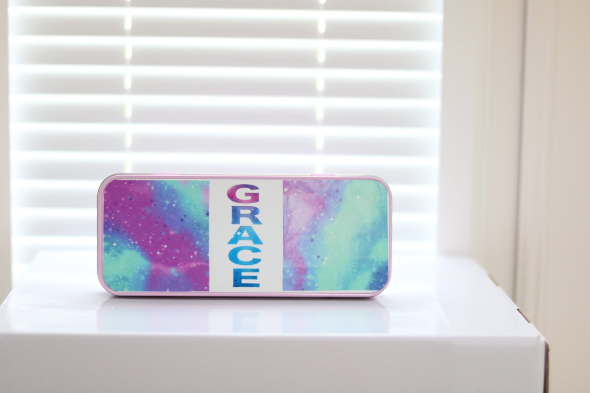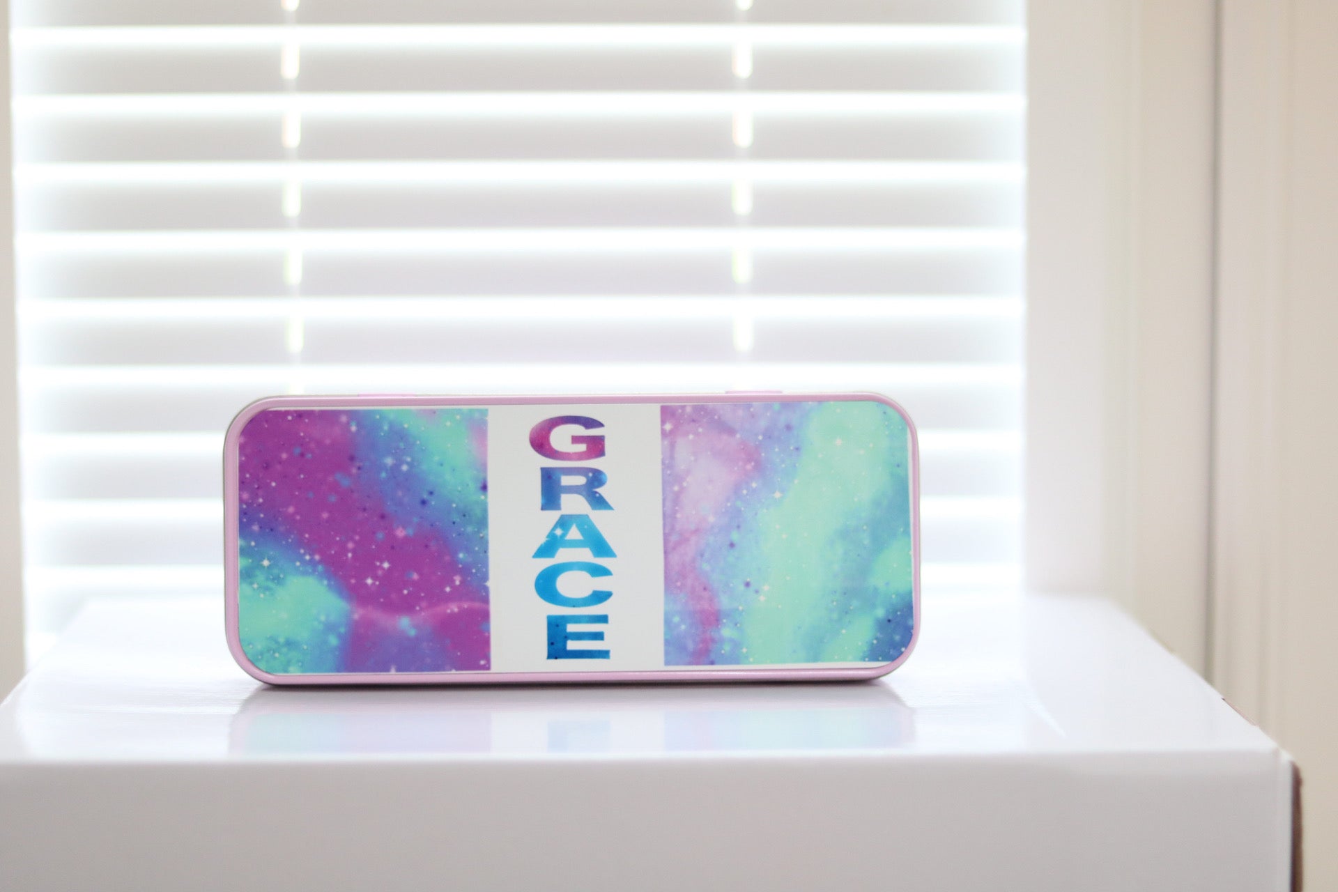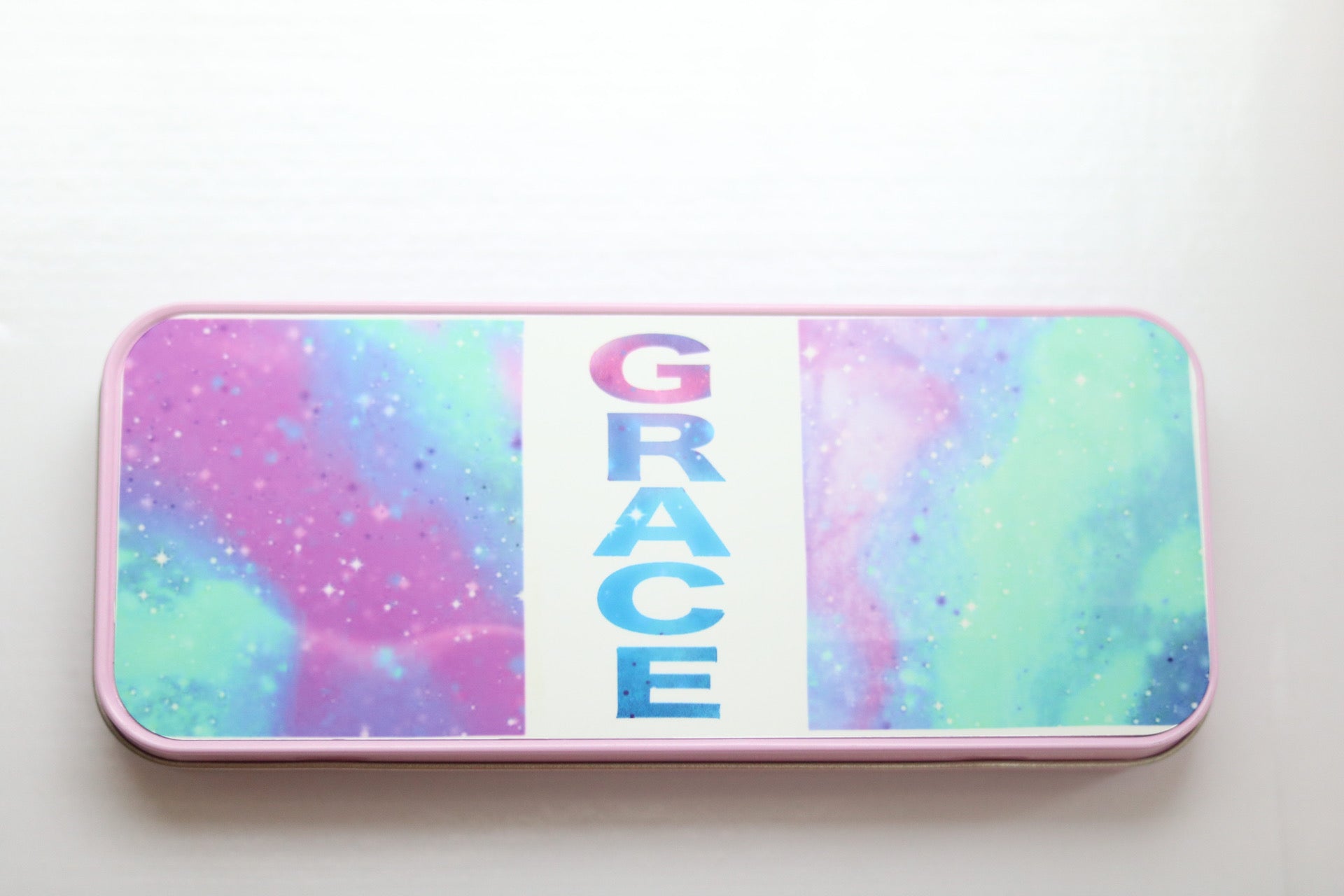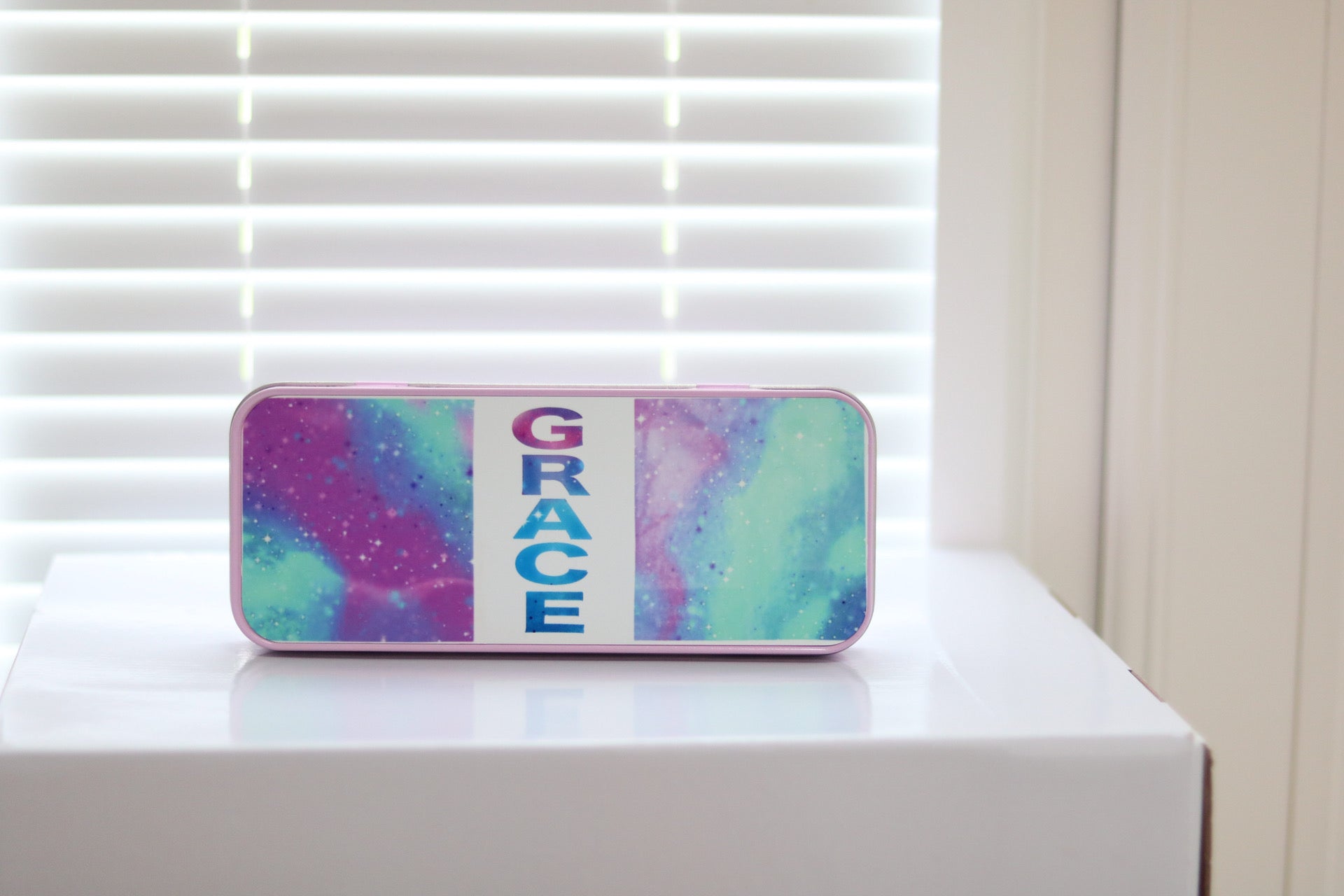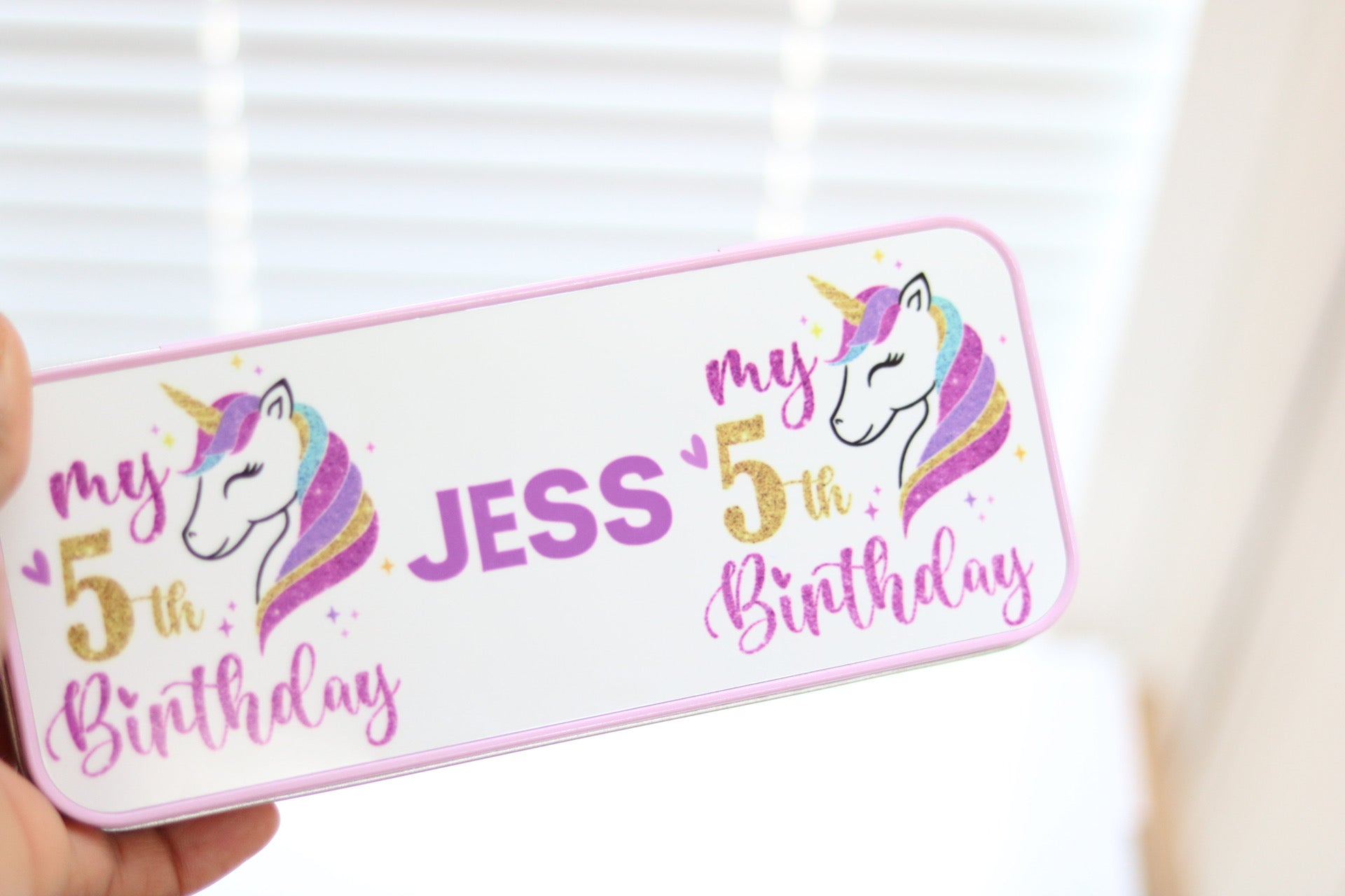 This personalised pencil case is the perfect way to keep your child's school supplies organised. Made from durable tin, it is designed to withstand the wear and tear of daily use. The personalisation adds a special touch, making it a unique and practical gift for any student.