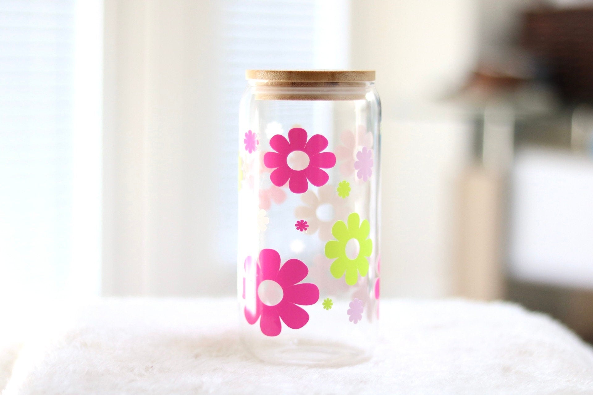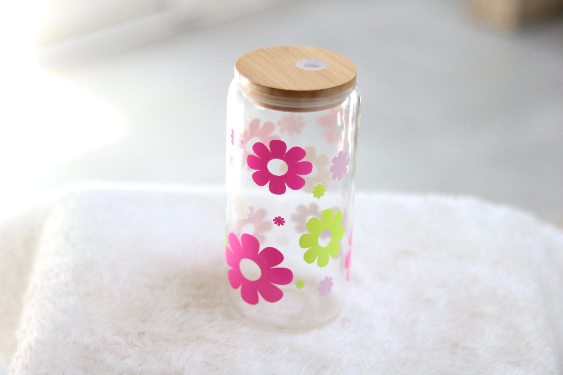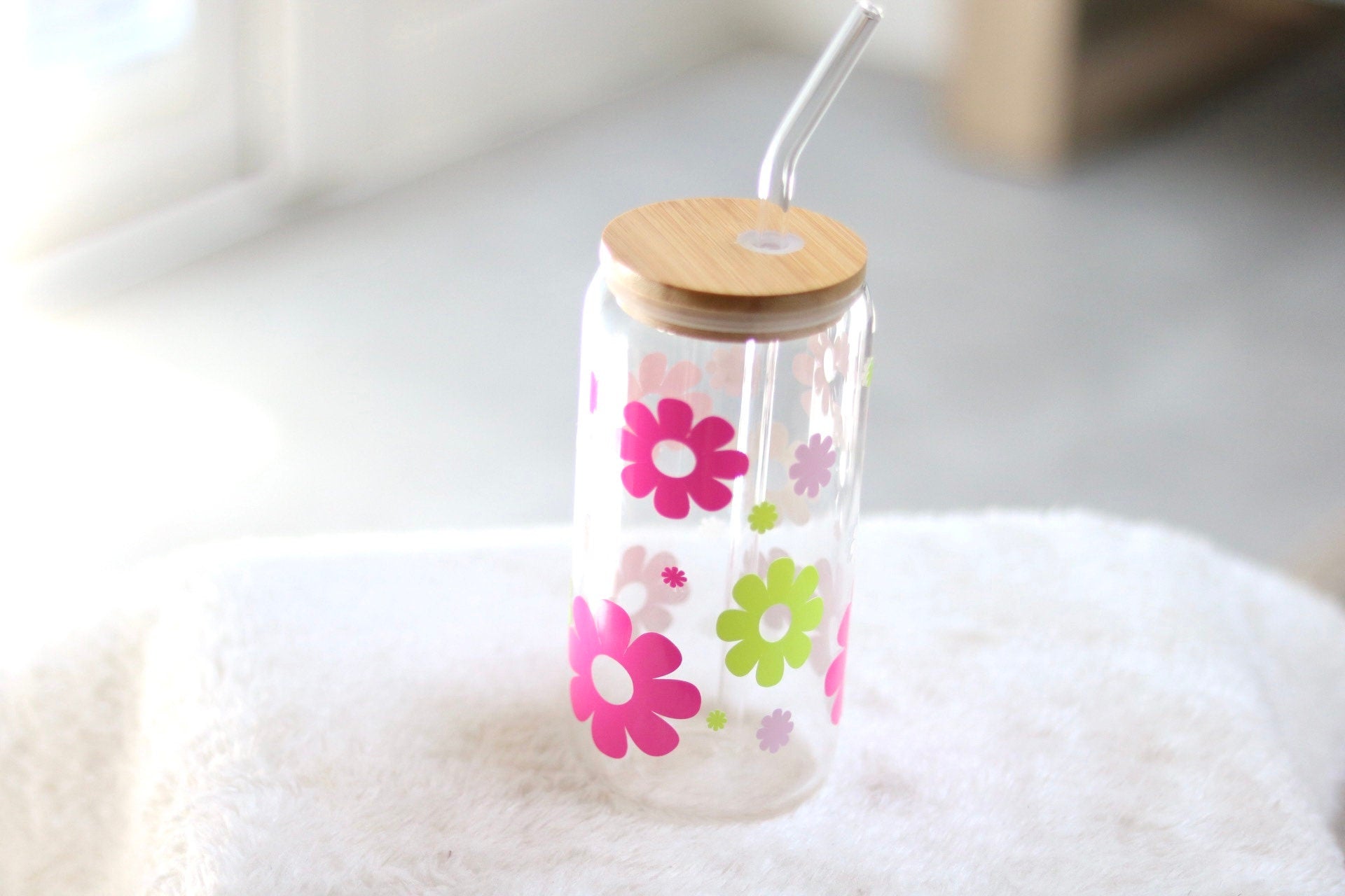This personalised 16oz Glass Can (Iced Coffee Tumbler/ Coffee Glass Can) is the perfect companion for Summer. It is personalised with beautiful daisies in vibrant colours. The best part is that the design is cold sensitive colon changing which means that when you pour on your delicious chilled summer drink, it will change colour. Isn’t that amazing?!!