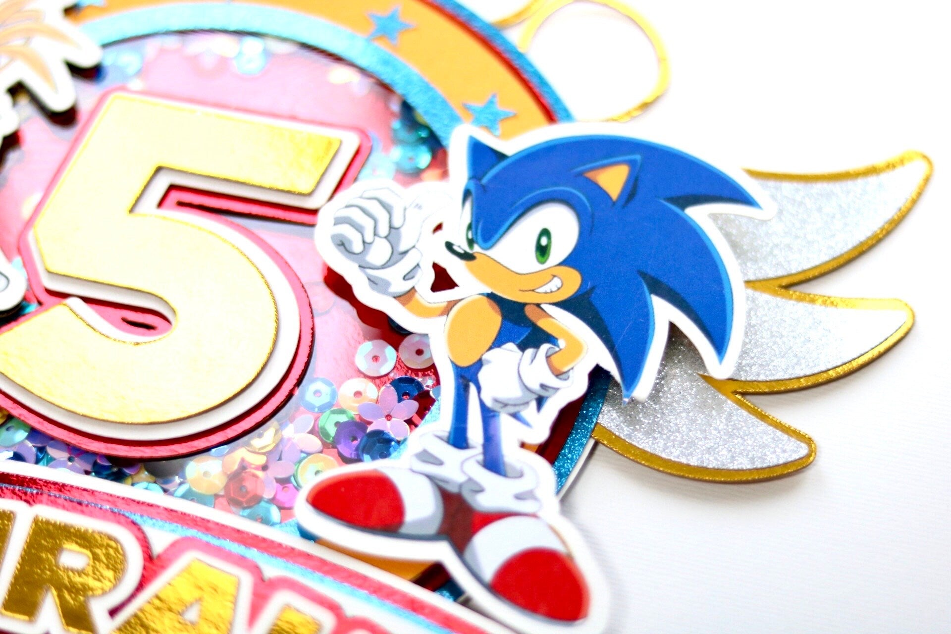 A beautiful Personalised Sonic the Hedgehog Cake Topper (3D & Shaker) which would make any fan absolutely delighted. It can be used for birthdays or any occasion you prefer. It does not necessarily have to be a birthday; it could be any celebration.